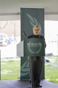 “Today we celebrate a tremendous milestone in our Empower Extraordinary campaign as we break ground on the business pavilion,” Simon said. “This pavilion shows how our campaign is making a difference at MSU, yet reminds us that there is still work to be done.”