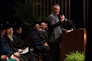 Ray Scott, president of Lear Corporation, presents the commencement address