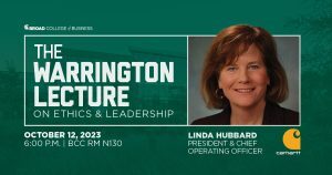 Linda Hubbard (B.A. Accounting ’82), President and Chief Operating Officer of Carhartt Inc., will be the featured executive speaker at the 2023 Warrington Lecture. Hubbard will join Interim Dean Judith Whipple in a “fireside chat” and Q&A.