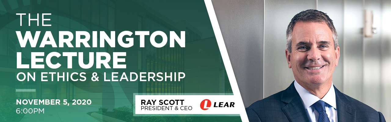 Ray Scott (Executive MBA ’02), President and CEO of Lear Corporation will be the featured executive speaker at the 2020 Warrington Lecture. Scott will join Eli and Edythe L. Broad Dean Sanjay Gupta in a “fireside chat” and Q&A.