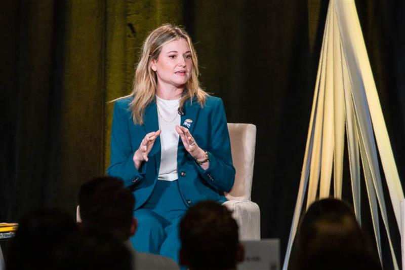 Kara Tripi speaking at the ROMBA conference in Los Angeles.