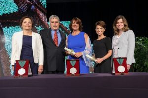 Presenter Mary Stone with award recipients William E. McCarthy, Margarita Maria Lenk, and Jill Mitchell and Deloitte Foundation representative Kathy Shoztic
