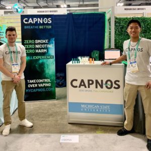 Last month, Wang and Roach took their venture on the road to Las Vegas for CES 2020 — the nation’s largest consumer technology show — hosted by the Consumer Technology Association. CAPNOS was one of three Spartan entrepreneurial endeavors representing MSU at CES, alongside student startups SKOOP and PhenoLogic and staff from the Burgess Institute for Entrepreneurship & Innovation.