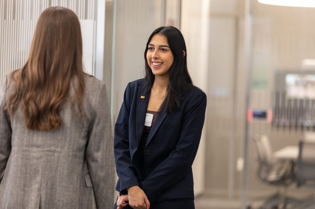 An essential part of leadership is being aware of current events. Weekly, Dashney and the cohort join in group discussions based on recent articles and podcasts in business news. For example, following the busy holiday season, Simone Peinkofer, associate professor of supply chain management, spoke to DWLA scholars on Amazon’s return issue. Conversations like these allow the scholars to relate recent events to their classroom learnings.