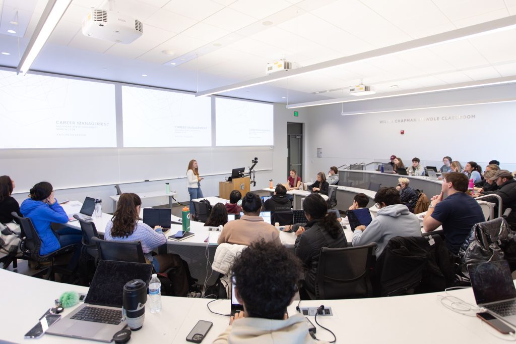 On March 28, Michigan State University welcomed back alumna Kaitlyn Dickerson (B.A Finance and Accounting ’08), currently the executive director of human resources at Morgan Stanley, for this installment of the Roy S. Pung Executive Speaker Series. Spartans listened to Dickerson share her experience and remind them that the path they are on right now doesn’t need to be the path they take for the rest of their lives. Every experience you take will teach you as you find the destination that is right for you. Students found reassurance in knowing that the career choice they make today could benefit them later, whether or not it changes in the future.